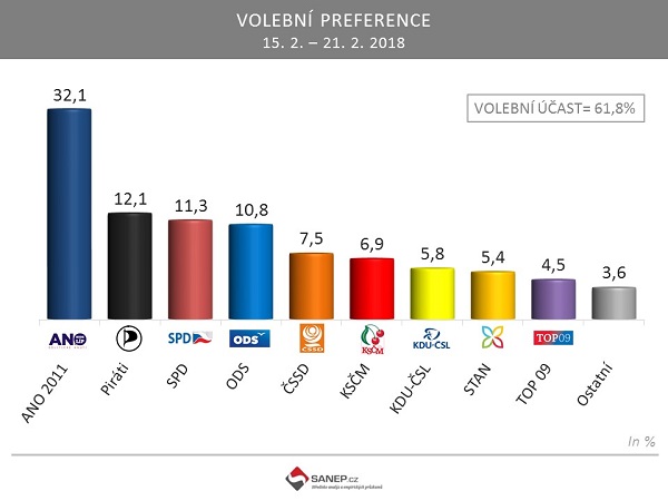 SANEP: Hnutí ANO posiluje, TOP 09 by se v únoru nedostala do Sněmovny!