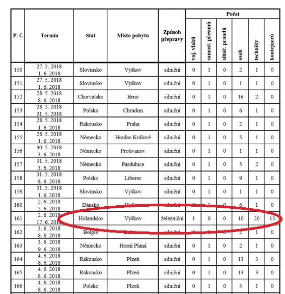 Přehled pozemních přeprav ozbrojených sil jiných států přes/na území České republiky v 1. pololetí roku 2018   je uveden stát Holandsko, odkud do Vyškova měl přijet vojenský vlak s 10 vojáky, s 20 kusy techniky a se 13 kontejnery. Jenže  Holandsko není žádný stát, ale pouze část státu Nizozemska.