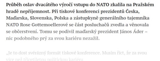 Oslavy výročí NATO pokazili na Pražském hradě nenažraní novináři
