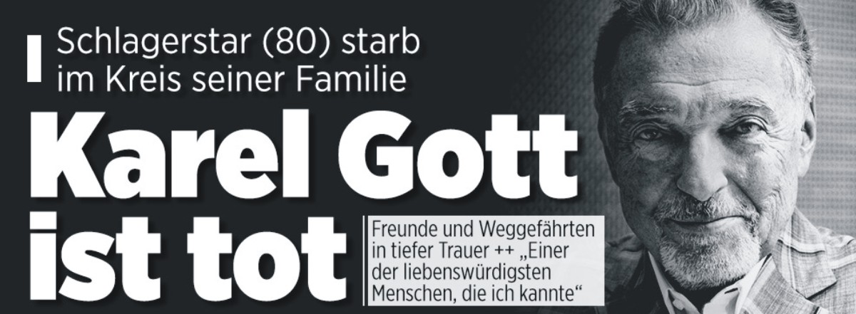 Karel Gott, jedna z největších hvězd, je mrtvý, „Zlatý hlas z Prahy“ zemřel v úterý večer krátce před půlnocí ve věku 80 let, zemřel v kruhu své rodiny.