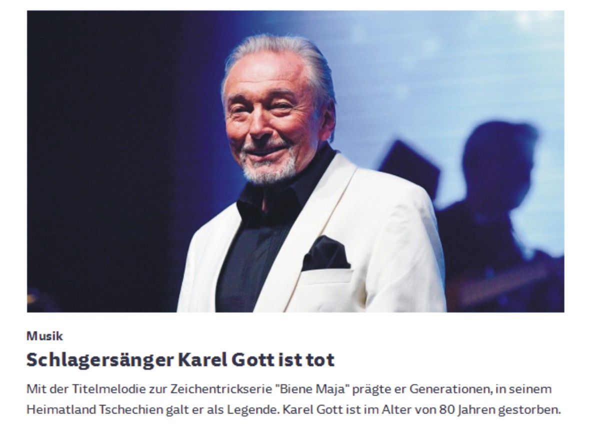 Německý tisk: Zemřel Karel Gott, Zlatý hlas z Prahy