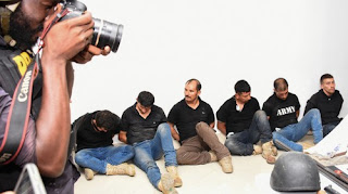 (Na snímku skupina zajatých žoldáků - vrahů haitského prezidenta Moïseho)