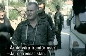 | Gen. Mladić prochází osvobozenou Srebrenicí - záběr z norského dokumentárního filmu "Srebrenica - obětované město" |
