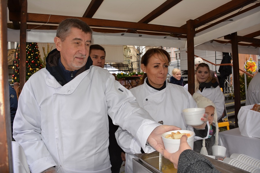 "Adriano, mohu říci, že moji Pražané mi rozumějí, ale zatím ještě nejsou všichni," svěřil se premiér Andrej Babiš, když na Štědrý den rozdával s primátorkou Prahy Adrianou Krnáčovou rybí polévku.
