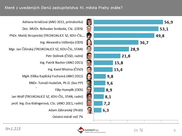 Z celkem 65 zastupitelů hl. m. Prahy se nicméně 51 zastupitelů pohybuje pouze pod 7% znalostí.